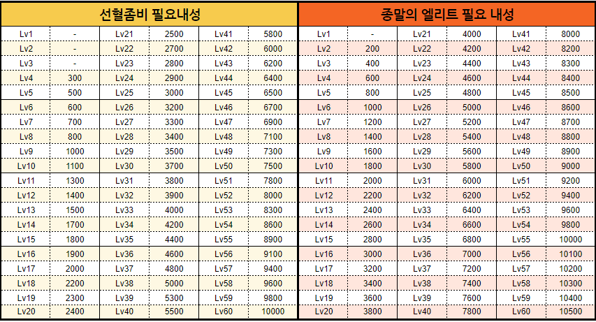 앞서 말씀 드렸듯이 대미지가 '감소' 하는 구조이기 때문에 좀비를 잡기 위해서는 반드시 해당 좀비보다 내성이 높을 필요는 없습니다.
