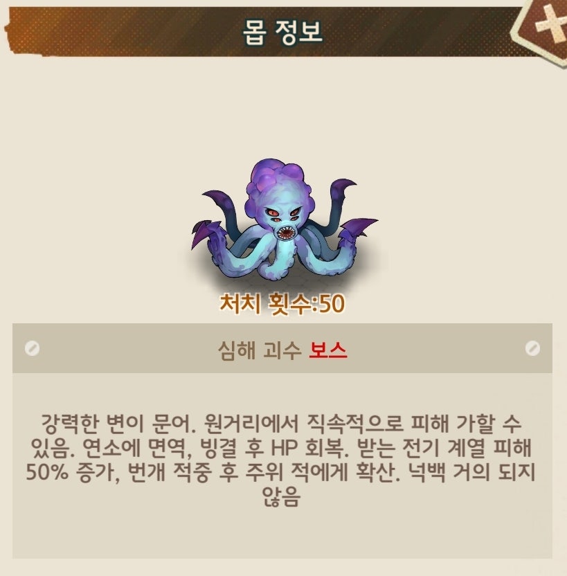 번개와 에너지계열 면역이며 난이도는 낮은편에 속합니다.