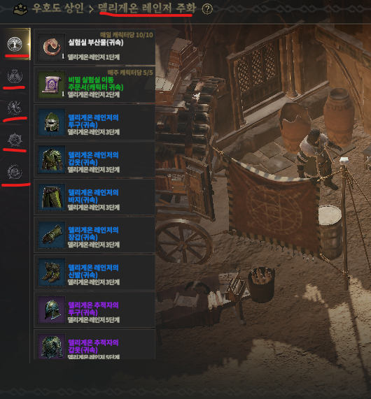 상점에서 각 세력별 장비들 확인하시고 자신에게 필요한 아이템을 가진 세력의 우호도를 증가시키면됩니다.