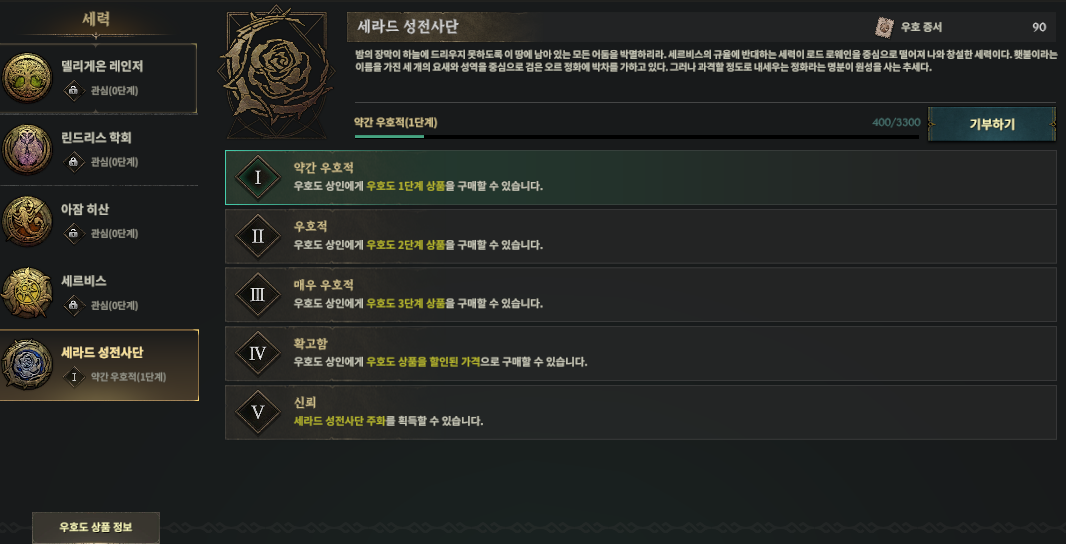 세력이 5개가 존재하며 델리게온 / 린드리스 / 아잠 / 세르비스 / 세라드