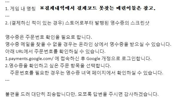 1.만약 결제내역이 없다해도 해당 구글플레이 계정에 해당 닉의 계정으로 접속된 기록이 슨크측에서 확인되면 코드는 보내줌.